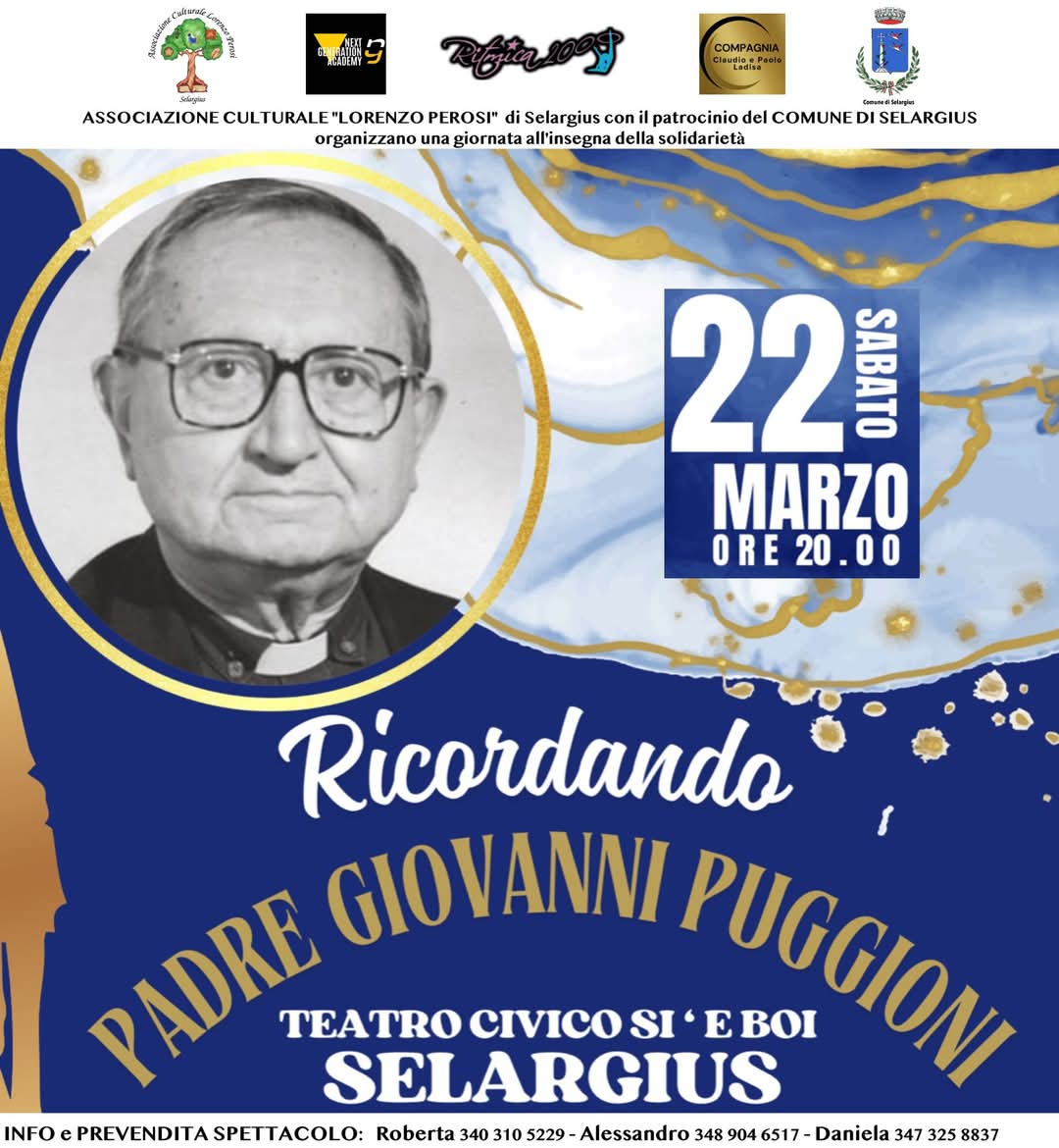 L'Associazione Culturale Lorenzo Perosi organizza presso il Teatro di Si'E Boi lo spettacolo "Ricordando Padre Giovanni Puggioni", nella giornata di sabato 22 Marzo 2025 ore 20:00.