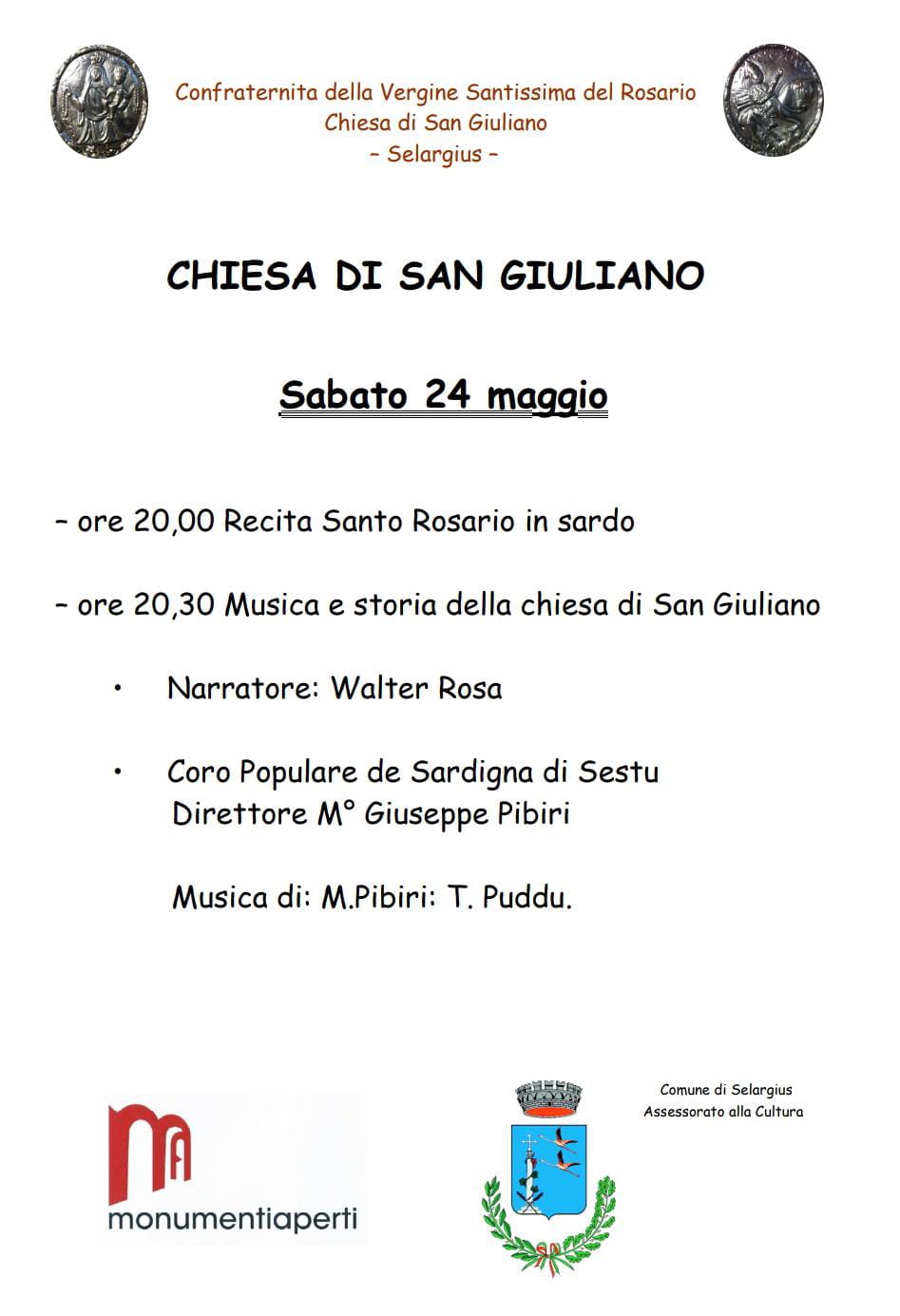 Domenica 25 maggio si terrà, alle ore 11:00, la celebrazione della Santa messa animata dai canti del *Coro Polifonico Kellarious* di Selargius diretto dalla maestra Valeria Busu a seguito il concerto.