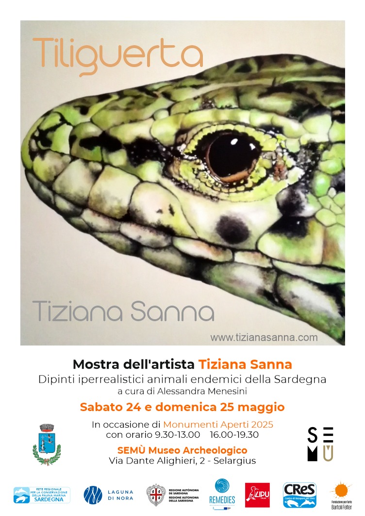 Sabato 24 dalle ore 9:30 alle ore 13:00 e dalle ore 16:00 alle ore 18:00, e domenica dalle ore 9:30 alle ore 13:00 e dalle 16:00 alle 19:30, l'Artista *Tiziana Sanna* presenta la mostra _*TILIGUERTA*_: "dipinti iperrealistici animali endemici della Sardegna".