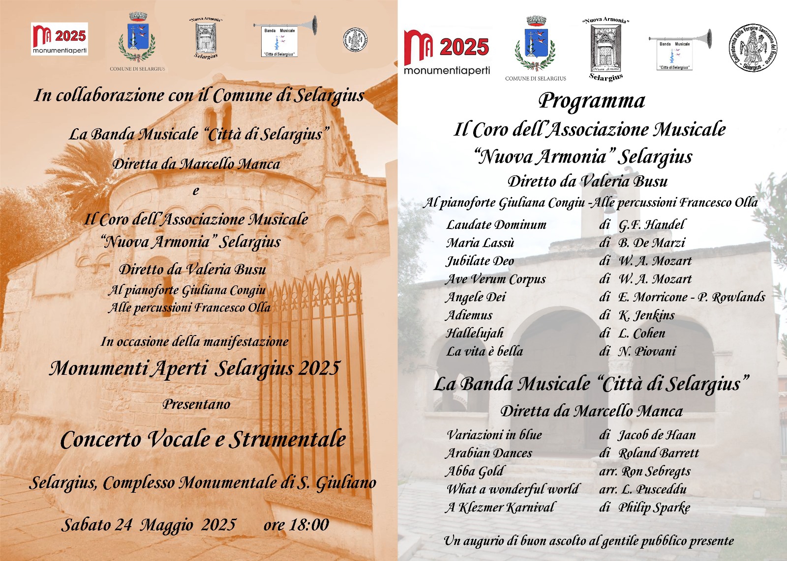 _"La banda città di Selargius"_ e il _"Coro dell'Associazione musicale "Nuova Armonia"_ Selargius. A seguire, alle 20:30